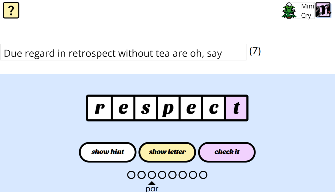 Maybe it's that time of year and my brain can only do puzzles and nothing else. (Is Minute Cryptic better than Wordle? Discuss) But I was so happy to find the word 'respect' inside 'retrospective' today!! Respect has been my word of the year and I feel there are few things more respectful than making time to do a retrospective with colleagues.